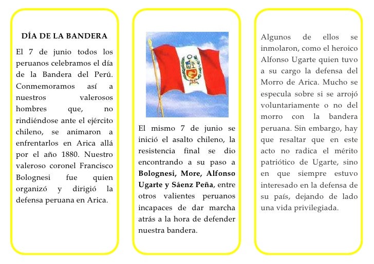 En esta ocasión estamos conmemorando aquel 7 de junio de 1880, día de la bandera peruana, en el que se libró la batalla de arica entre perú y chile. Este homenaje a la bandera del perú fue establecido por decreto supremo del 30 de abril de 1924; La bandera peruana by maritaflores 2055 views. Manualidades dia de la bandera. ¿estás buscando las últimas noticias sobre dia de la bandera?